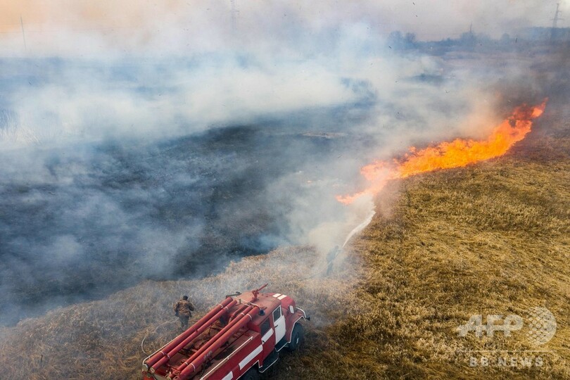 【4月14日 AFP】1986年に世界最悪の原発事故が起きたウクライナのチェルノブイリ(Chernobyl)原発周辺の居住禁止区域で発生した森林火災について、ウクライナ当局は13日、発生から約10日たった今も消防士数百人を動員した消火活動が依然続いていることを明かした。