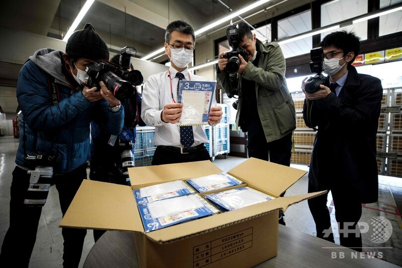 【4月16日 AFP】安倍晋三(Shinzo Abe)政権が新型コロナウイルス感染症(COVID-19) の予防策として全世帯に配布を決めた布製マスクが16日、都内の郵便局に到着した。