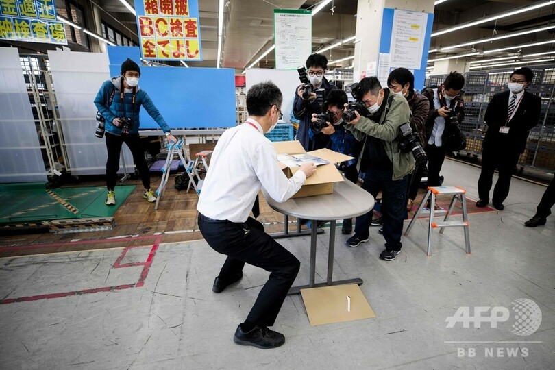 【4月16日 AFP】安倍晋三(Shinzo Abe)政権が新型コロナウイルス感染症(COVID-19) の予防策として全世帯に配布を決めた布製マスクが16日、都内の郵便局に到着した。