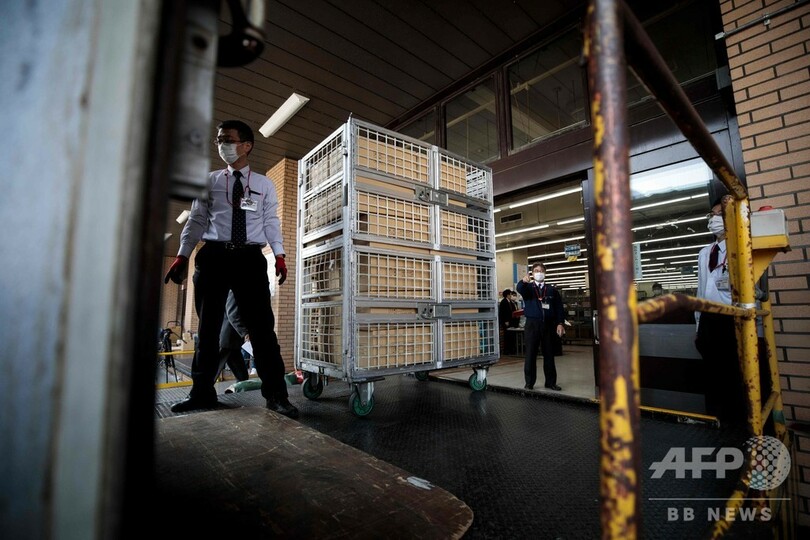 【4月16日 AFP】安倍晋三(Shinzo Abe)政権が新型コロナウイルス感染症(COVID-19) の予防策として全世帯に配布を決めた布製マスクが16日、都内の郵便局に到着した。