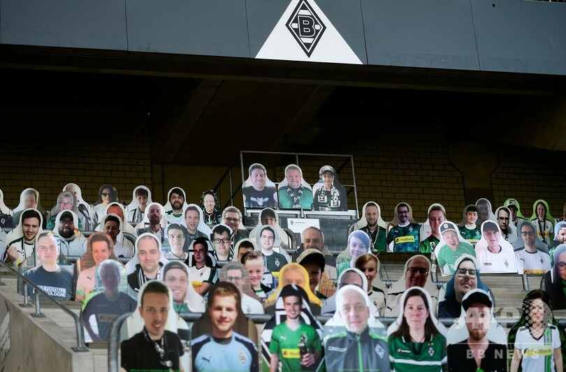 ボルシアMGは前週、本拠地ボルシア・パルク(Borussia Park)で小集団に分かれての練習を再開させており、スタジアムの観客席には、選手の士気を上げるためファンの姿に切り抜かれた厚紙が並べられている。