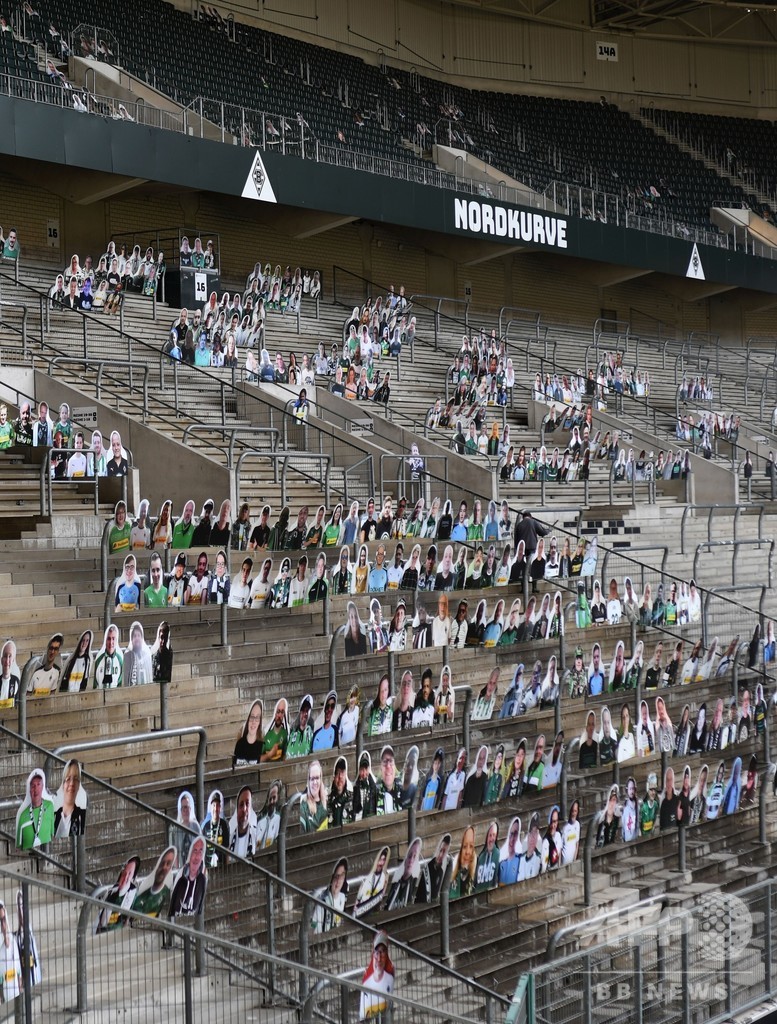 ボルシアMGは前週、本拠地ボルシア・パルク(Borussia Park)で小集団に分かれての練習を再開させており、スタジアムの観客席には、選手の士気を上げるためファンの姿に切り抜かれた厚紙が並べられている。