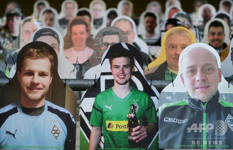 ボルシアMGは前週、本拠地ボルシア・パルク(Borussia Park)で小集団に分かれての練習を再開させており、スタジアムの観客席には、選手の士気を上げるためファンの姿に切り抜かれた厚紙が並べられている。