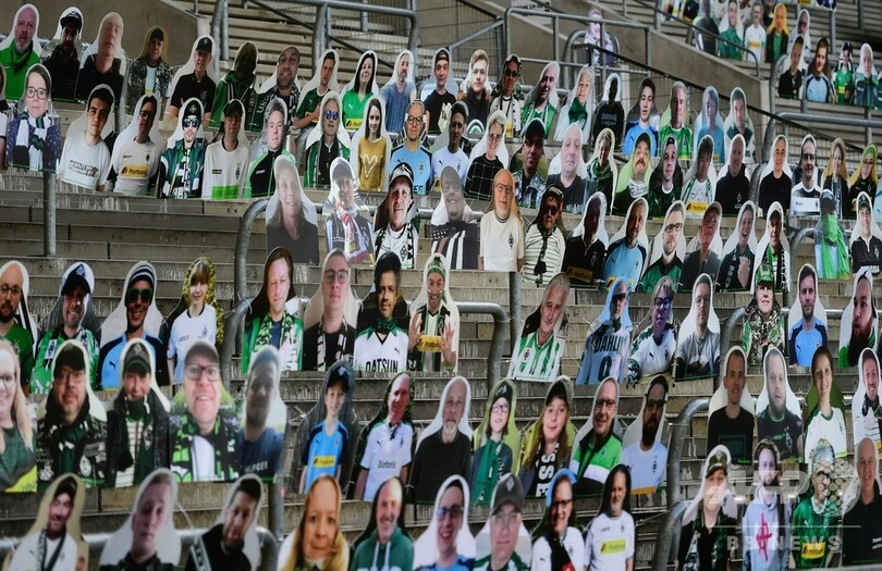 ボルシアMGは前週、本拠地ボルシア・パルク(Borussia Park)で小集団に分かれての練習を再開させており、スタジアムの観客席には、選手の士気を上げるためファンの姿に切り抜かれた厚紙が並べられている。