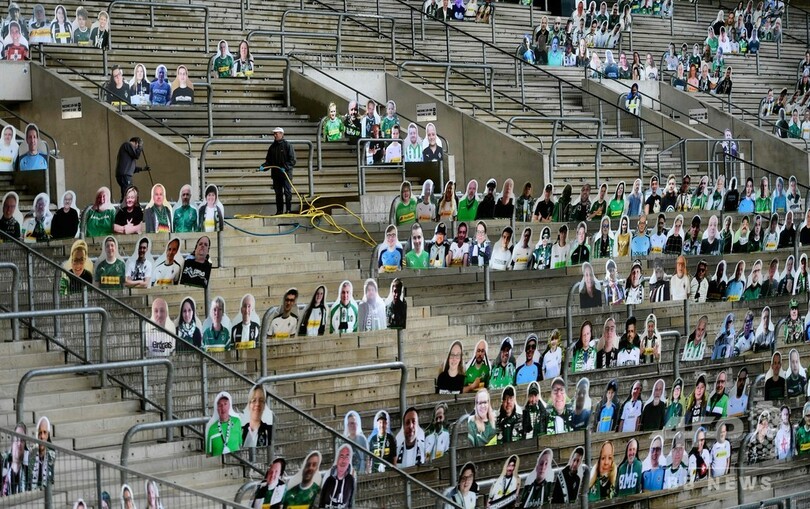 ボルシアMGは前週、本拠地ボルシア・パルク(Borussia Park)で小集団に分かれての練習を再開させており、スタジアムの観客席には、選手の士気を上げるためファンの姿に切り抜かれた厚紙が並べられている。