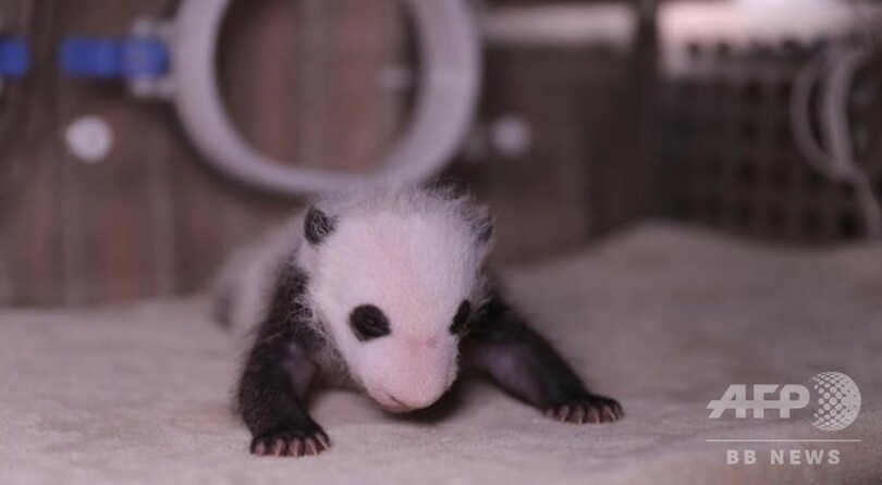 現在、この2頭の赤ちゃんの健康状態は良好で、「熱乾麺」の体重は1000グラム、「蛋烘糕」は800グラムとなり、皮膚もピンク色からパンダの特徴である白と黒へ変わっている。(c)CNS/JCM/AFPBB News
