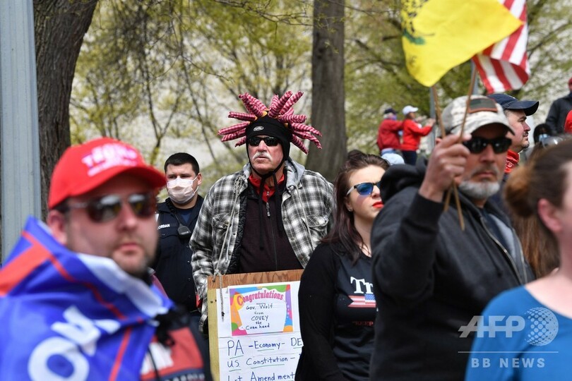 米衛生当局関係者らは、拙速な外出制限解除によって新型ウイルスの流行が再燃するリスクがあると警告しているが、ドナルド・トランプ(Donald Trump)米大統領はこうした外出制限に対する抗議デモを激励している。(c)AFP/Michael Mathes, with Catherine Triomphe in Harrisburg and AFP bureaus