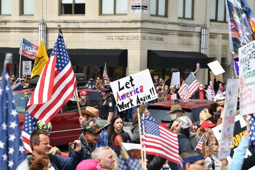 一方、州ごとに外出制限が出されている米国では、緩和へ向けた州知事の動きが鈍いと批判する人々がここ数日にわたって、各州都で経済活動再開を求めて抗議デモを展開している。