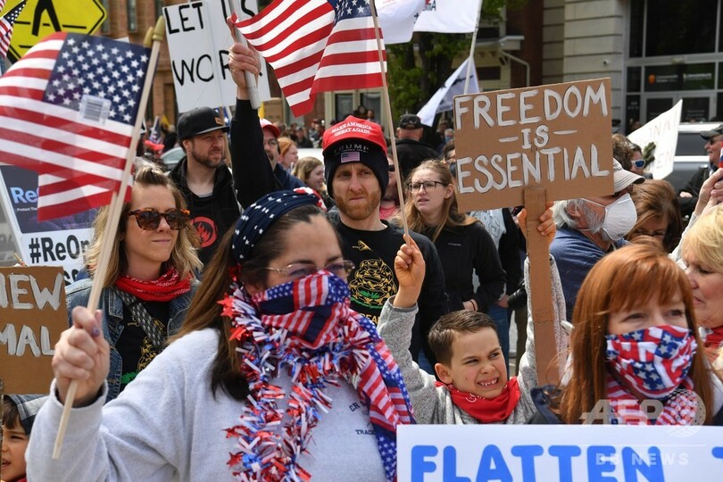 一方、州ごとに外出制限が出されている米国では、緩和へ向けた州知事の動きが鈍いと批判する人々がここ数日にわたって、各州都で経済活動再開を求めて抗議デモを展開している。