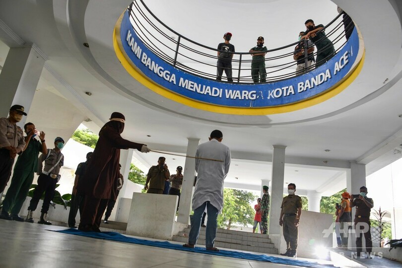 【4月21日 AFP】インドネシア・アチェ(Aceh)州の州都バンダアチェ(Banda Aceh)で21日、シャリア(イスラム法)に違反した6人に対する公開むち打ち刑が執行された。新型コロナウイルスへの懸念から、大規模な集会が広く禁止されている中での執行となった。