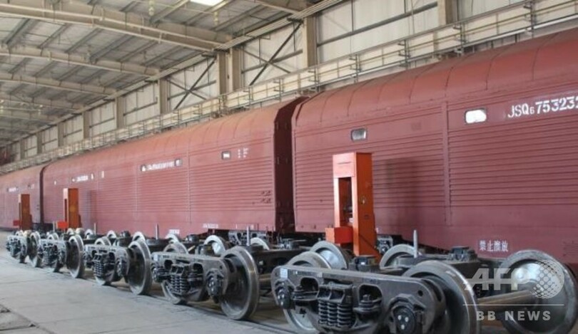 そこで中国鉄道部門は新たに、台車、車輪と連結器を交換する国際旅客列車の方式を取り入れ、貨物のスムーズな輸出を実現。国境での作業時間は早ければ1日以内に短縮され、輸出効率を大きく高めた。(c)CNS/JCM/AFPBB News