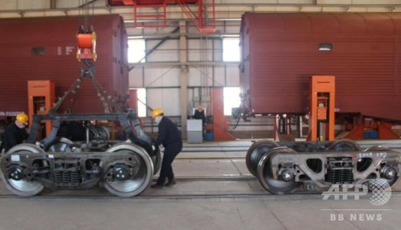 そこで中国鉄道部門は新たに、台車、車輪と連結器を交換する国際旅客列車の方式を取り入れ、貨物のスムーズな輸出を実現。国境での作業時間は早ければ1日以内に短縮され、輸出効率を大きく高めた。(c)CNS/JCM/AFPBB News