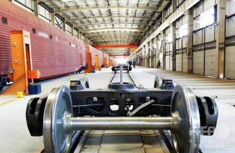 そこで中国鉄道部門は新たに、台車、車輪と連結器を交換する国際旅客列車の方式を取り入れ、貨物のスムーズな輸出を実現。国境での作業時間は早ければ1日以内に短縮され、輸出効率を大きく高めた。(c)CNS/JCM/AFPBB News