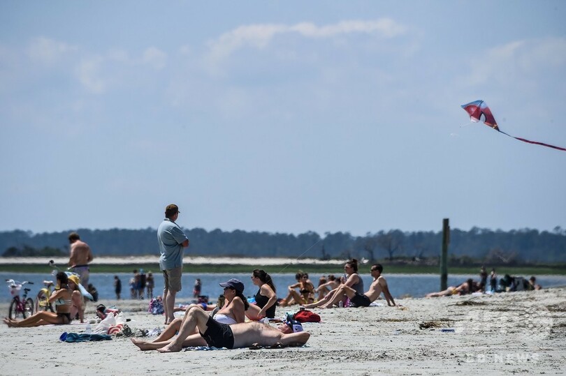 【4月26日 AFP】米南部ジョージア州で新型コロナウイルス対策の行動規制が緩和されてから一夜明けた25日、同州のビーチに多くの住民が訪れ、太陽の光や砂、海の波を楽しんだ。