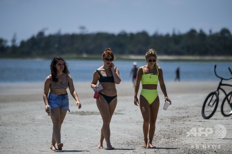 【4月26日 AFP】米南部ジョージア州で新型コロナウイルス対策の行動規制が緩和されてから一夜明けた25日、同州のビーチに多くの住民が訪れ、太陽の光や砂、海の波を楽しんだ。