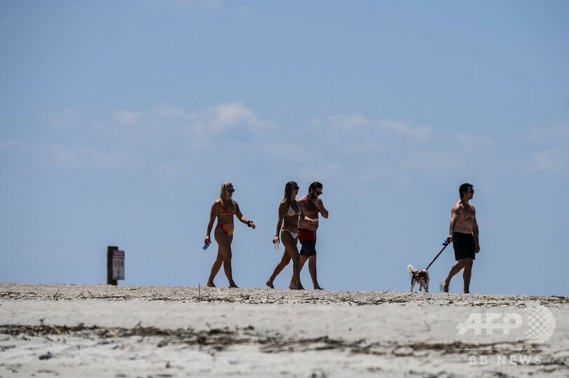 【4月26日 AFP】米南部ジョージア州で新型コロナウイルス対策の行動規制が緩和されてから一夜明けた25日、同州のビーチに多くの住民が訪れ、太陽の光や砂、海の波を楽しんだ。