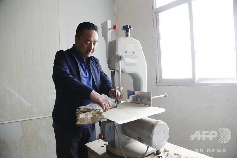 オソンドジェさんは弟子を率いて、水牛の角の切断や磨く工程、竹の加工、絵図の描き込みの工程などを通し、完全手作業によるチベット伝統の「牛角弓」を作り出す。工房内には、射場も備えられている。(c)CNS/JCM/AFPBB News