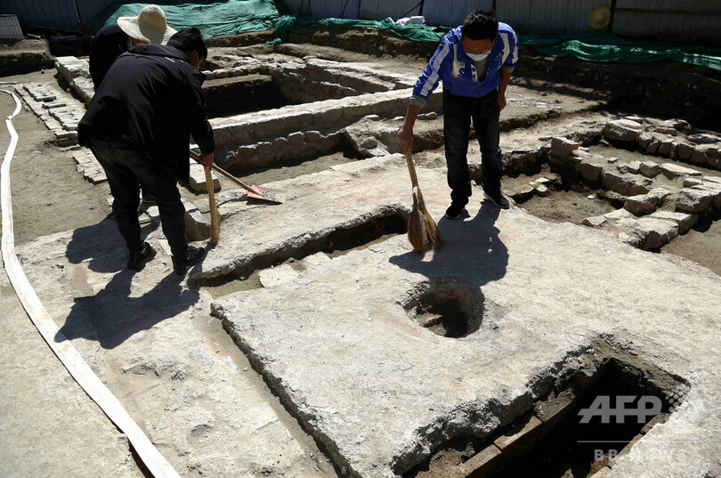 この現場の発掘面積は約200平方メートル、清朝末期から中華民国初期にかけての複数の建築遺跡が発見され、当時の都市住宅の建造方式や機能構造と水源確保などの研究において、重要な意義を持っている。(c)CNS/JCM/AFPBB News