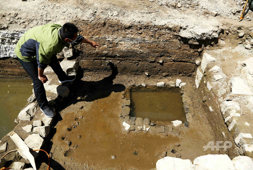 この現場の発掘面積は約200平方メートル、清朝末期から中華民国初期にかけての複数の建築遺跡が発見され、当時の都市住宅の建造方式や機能構造と水源確保などの研究において、重要な意義を持っている。(c)CNS/JCM/AFPBB News