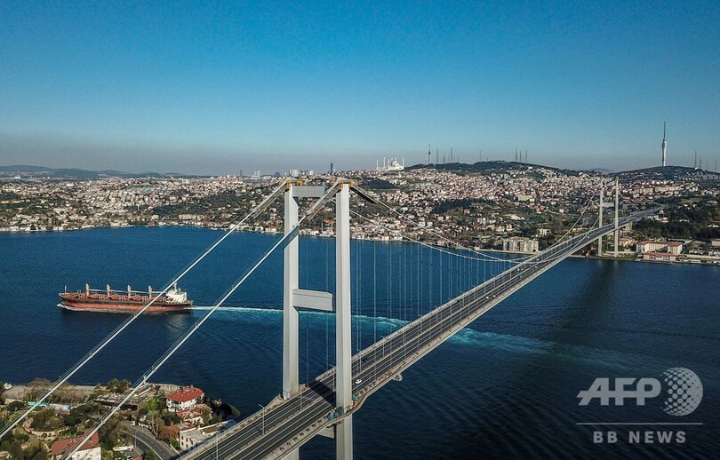 【4月27日 AFP】新型コロナウイルスのパンデミック(世界的な大流行)により船の運航と漁業が止まったトルコのイスタンブールでは、欧州とアジアを隔てるボスポラス海峡(Bosphorus Strait)の海の幸の豊かな水域を人気者のイルカが泳ぎ回っている。