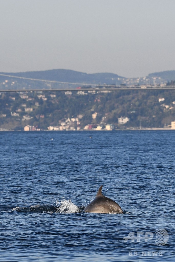 【4月27日 AFP】新型コロナウイルスのパンデミック(世界的な大流行)により船の運航と漁業が止まったトルコのイスタンブールでは、欧州とアジアを隔てるボスポラス海峡(Bosphorus Strait)の海の幸の豊かな水域を人気者のイルカが泳ぎ回っている。