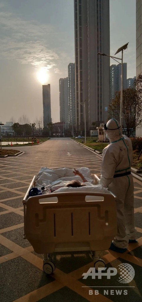 復旦大学付属中山病院から派遣された支援チームの医師・劉凱(Liu Kai)さんは、王さんの治療に携わった一人。この1か月前に撮影された劉医師と王さんの「ツーショット写真」は多くの人に感動を与えた。CT検査のため王さんを搬送する途中、劉医師がふと立ち止まった。目の前には、ビルに降り立つような夕日。病棟にこもりっきりの王さんに、久しぶりに美しい景色を観賞してもらおうという劉医師の思いやりだった。