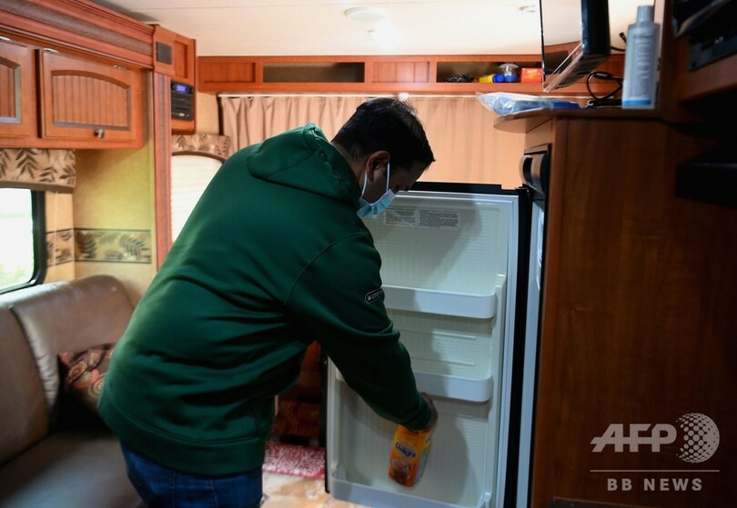 「家族と離れて過ごすこともつらい。でも、ここからみんなを見ることはできる」。サミュエル氏がキャンピングカーで暮らせるようになったのは、医療従事者にキャンピングカーを提供しているボランティアグループ「RVs 4 MDs」のおかげだ。この組織では、新型コロナウイルス感染症(COVID-19)が自分の家族に広まることを恐れる医療従事者と、貸し出せるキャンピングカーを所有する人をつないでいる。
