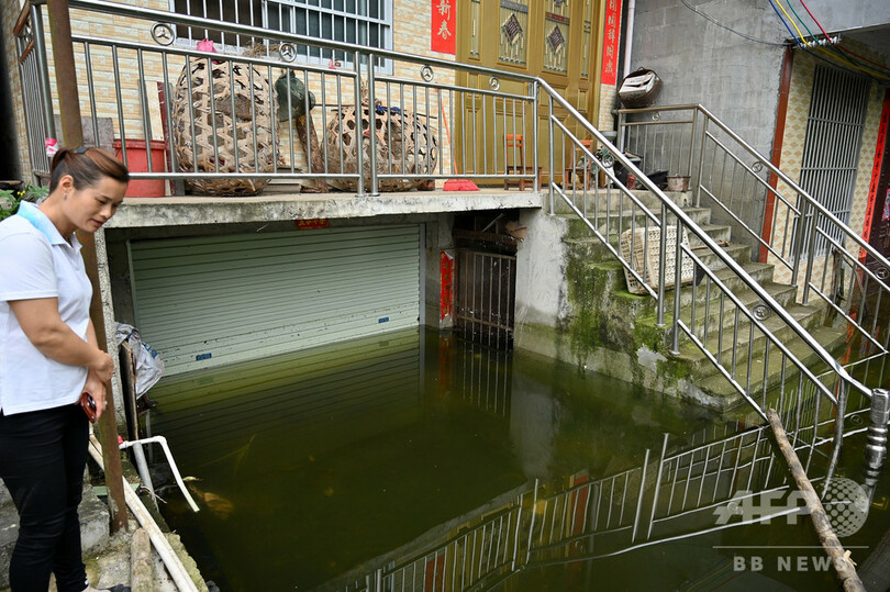 地下水が突然大量に湧出、水に漬かった村 中国・広西