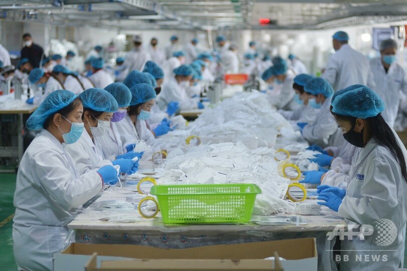 中国の主な感染症対策物資の1日平均輸出額は、4月上旬の10億元(約150億円)から中旬の20億元(約300億円)へと増加。現在は25億元(約377億円)を超え、顕著な増加傾向にある。(c)CNS/JCM/AFPBB News