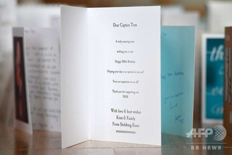 【5月6日 AFP】英ロンドン北部ベッドフォード(Bedford)の学校の講堂に置かれた退役軍人トム・ムーア(Tom Moore)さんの100歳の誕生日を祝って送られた12万5000枚以上のカード。学校は、新型コロナウイルス感染流行のため閉鎖されている。