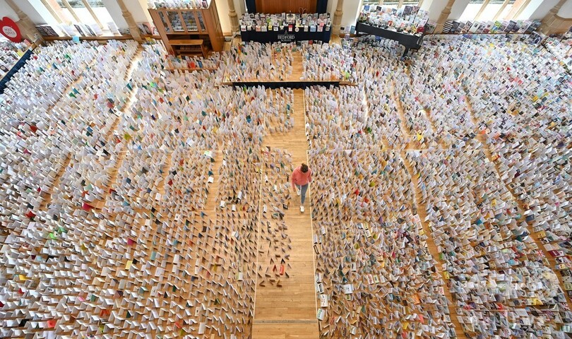 【5月6日 AFP】英ロンドン北部ベッドフォード(Bedford)の学校の講堂に置かれた退役軍人トム・ムーア(Tom Moore)さんの100歳の誕生日を祝って送られた12万5000枚以上のカード。学校は、新型コロナウイルス感染流行のため閉鎖されている。