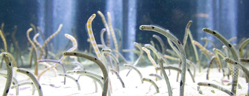 チンアナゴは非常に繊細で警戒心が強いが、同館で暮らす300匹のチンアナゴは人間に慣れており、来館者が近づいても砂の中に隠れることはめったになかった。