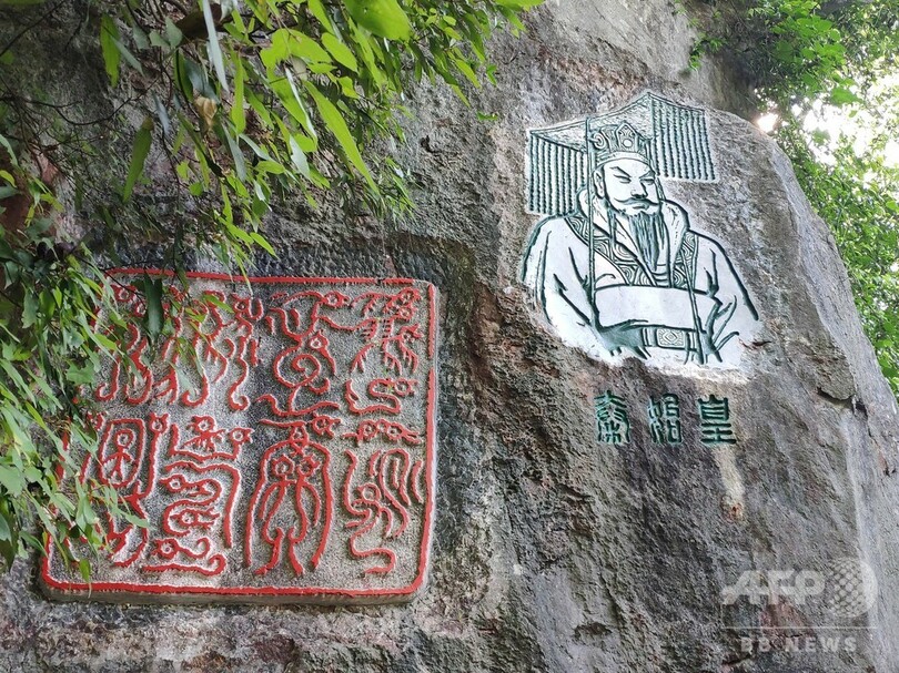 園内の自然の岩石には、中国数千年の各年代の書や印章図案など約4800種のさまざまな作品が彫りこまれている。(c)CNS/JCM/AFPBB News