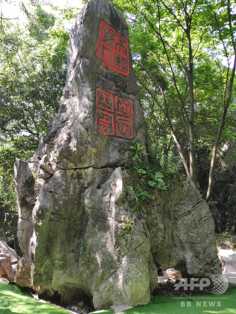 園内の自然の岩石には、中国数千年の各年代の書や印章図案など約4800種のさまざまな作品が彫りこまれている。(c)CNS/JCM/AFPBB News