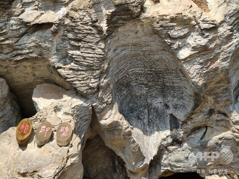 園内の自然の岩石には、中国数千年の各年代の書や印章図案など約4800種のさまざまな作品が彫りこまれている。(c)CNS/JCM/AFPBB News