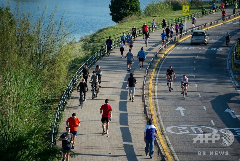 【5月3日 AFP】スペインで2日、3月14日に導入された新型コロナウイルス対策の封鎖措置が緩和され、7週間も家に閉じこもることを強いられた人たちが外へ出てジョギングやサイクリング、ローラースケートを楽しむ姿が見られた。ロシアで感染者数の急増が報告される一方、イタリアも4日から公園の散歩などを認める予定にしており、一部の欧州諸国でロックダウン(都市封鎖)の緩和が慎重に進められている。