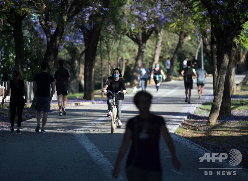 【5月3日 AFP】スペインで2日、3月14日に導入された新型コロナウイルス対策の封鎖措置が緩和され、7週間も家に閉じこもることを強いられた人たちが外へ出てジョギングやサイクリング、ローラースケートを楽しむ姿が見られた。ロシアで感染者数の急増が報告される一方、イタリアも4日から公園の散歩などを認める予定にしており、一部の欧州諸国でロックダウン(都市封鎖)の緩和が慎重に進められている。