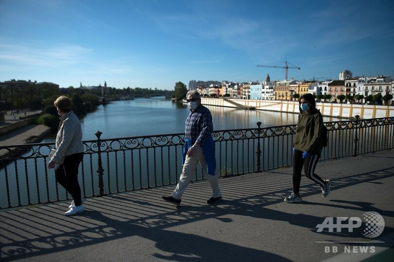 スペイン政府が厳格な封鎖措置を緩和し、外で運動したり歩いたりすることを許可したのを受け、首都マドリードからマジョルカ(Mallorca)島に至るスペイン各地で多くの人が外に繰り出した。同国では、新型コロナウイルスにより2万5000人近くが死亡し、世界で最も死者が多い国の一つに数えられる。