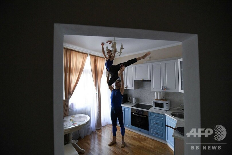 【5月4日 AFP】ロシアの伝説的なボリショイ・バレエ団(Bolshoi Ballet)のダンサー、マルガリータ・シュライナー(Margarita Shrainer)さん(26)とイゴーリ・ツビルコ(Igor Tsvirko)さん(30)のカップルの寝室には、中央にバレエ用のリノリウムとバーが置かれている。