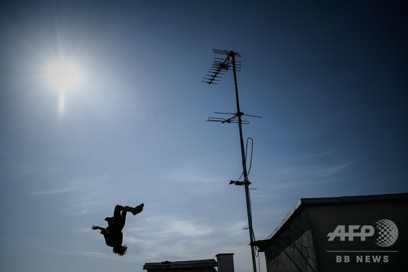 【5月10日 AFP】新型コロナウイルスの感染拡大阻止を目的にロックダウン(都市封鎖)措置が取られている仏パリの屋上を、機敏に動き回る男性。フリーランナーのシモン・ノゲイラ(Simon Nogueira)さんは、人けが消え、これまで以上に「光の都」となったパリのまばゆいばかりの景観を楽しんでいる。