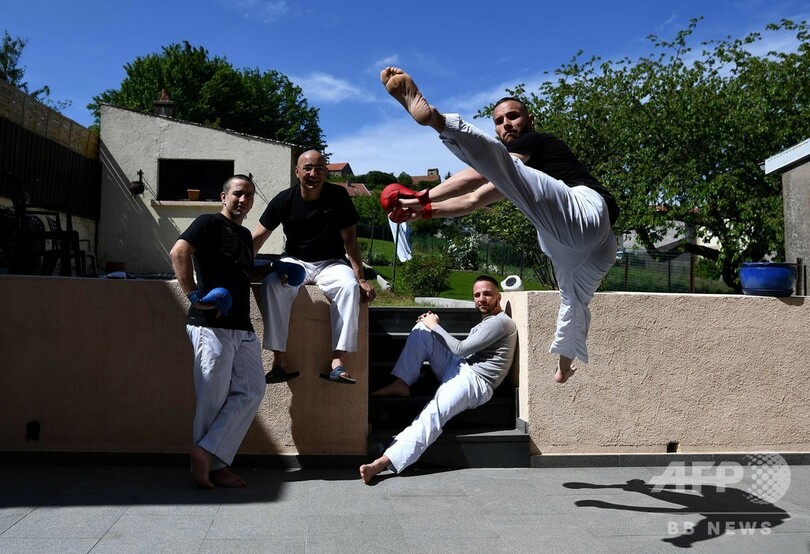 【5月18日 AFP】仏東部モンサンマルタン(Mont Saint Martin)にある実家のテラスで練習に励む、空手の世界チャンピオンで東京五輪のフランス代表に内定しているスティーブン・ダコスタ(Steven Da Costa)。(c)AFP