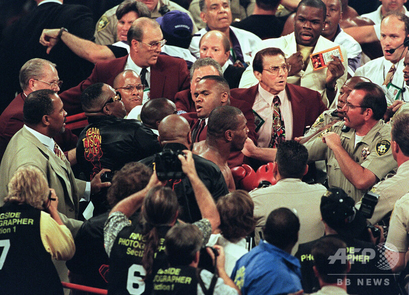 ホリフィールド氏は、ブライアン・ニールセン(Brian Nielsen)氏に10回TKO勝ちした2011年の一戦が最後の試合となっており、通算戦績は44勝10敗2分け。タイソン氏とは1996年の初対戦で11回TKO勝利を収めてWBAのタイトルを獲得すると、翌年の再戦ではタイソン氏がかみつき行為で失格となり、勝利を手にしている。