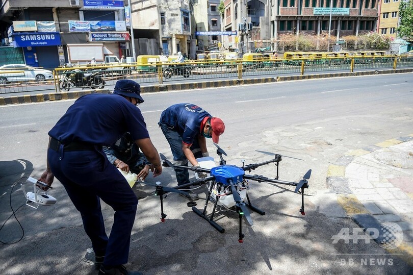 ドローンなどで街を消毒、コロナ禍深刻なインドのアーメダバード