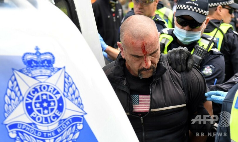 【5月11日 AFP】オーストラリア・メルボルンで10日、ロックダウン(都市封鎖)に反対する抗議デモが行われ、10人が逮捕された他、警官1人が負傷した。抗議デモの参加者は、新型コロナウイルスは国民を統制する目的で政府が仕組んだ陰謀だと主張している。