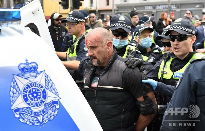 【5月11日 AFP】オーストラリア・メルボルンで10日、ロックダウン(都市封鎖)に反対する抗議デモが行われ、10人が逮捕された他、警官1人が負傷した。抗議デモの参加者は、新型コロナウイルスは国民を統制する目的で政府が仕組んだ陰謀だと主張している。