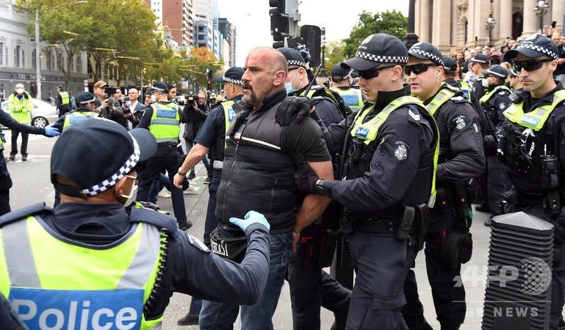 【5月11日 AFP】オーストラリア・メルボルンで10日、ロックダウン(都市封鎖)に反対する抗議デモが行われ、10人が逮捕された他、警官1人が負傷した。抗議デモの参加者は、新型コロナウイルスは国民を統制する目的で政府が仕組んだ陰謀だと主張している。