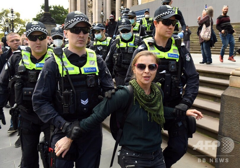 【5月11日 AFP】オーストラリア・メルボルンで10日、ロックダウン(都市封鎖)に反対する抗議デモが行われ、10人が逮捕された他、警官1人が負傷した。抗議デモの参加者は、新型コロナウイルスは国民を統制する目的で政府が仕組んだ陰謀だと主張している。