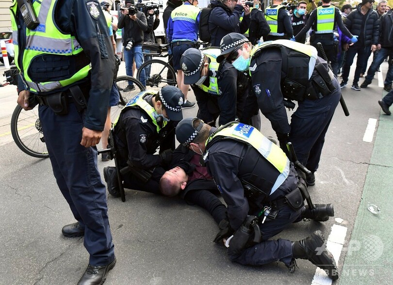 【5月11日 AFP】オーストラリア・メルボルンで10日、ロックダウン(都市封鎖)に反対する抗議デモが行われ、10人が逮捕された他、警官1人が負傷した。抗議デモの参加者は、新型コロナウイルスは国民を統制する目的で政府が仕組んだ陰謀だと主張している。