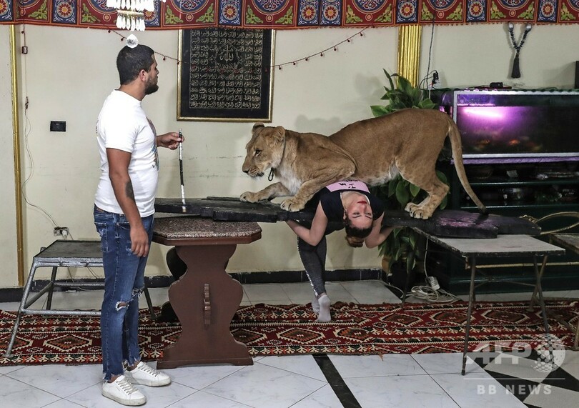 サーカス閉鎖なら自宅の居間で! エジプトの猛獣使い、ライオン調教を生配信