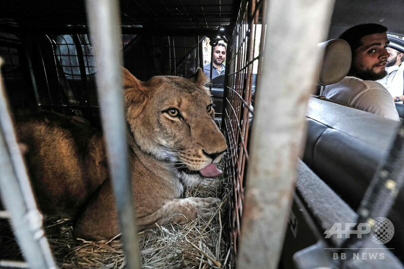ヘルワさんはこれまでにも、子どものライオンを連れ帰ることはあったが、成体のライオンを連れて来たのは今回が初めて。「ジュマナを家に連れて来るのは、人々を楽しませたい、その一心だ」と話している。(c)AFP/Emmanuel Parisse